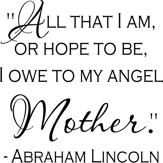 Decal of the words “All that I am, or hope to be, I owe to my angel Mother.” – Abraham Lincoln