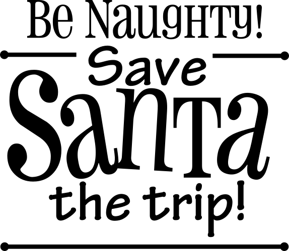 Decal of the words “Be Naughty Save Santa the trip!”