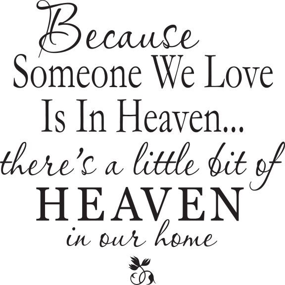 Decal of the words “Because someone we love is in heaven…there’s a little bit of heaven in our home”