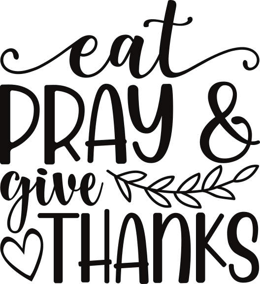 Decal of a leaf and heart with the words “eat pray & give thanks”