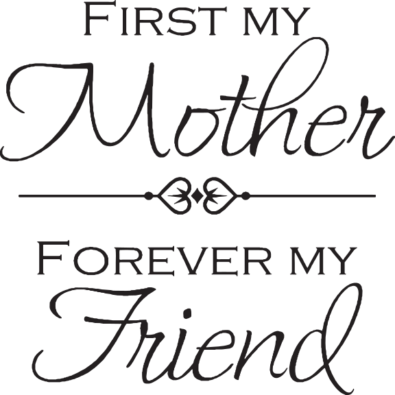 Decal of the words “First my mother forever my friend” with heart flourishes