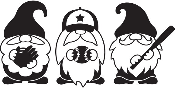 Gnomes holding a glove, baseball and bat