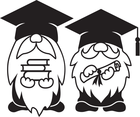 Graduating gnomes with books and diploma