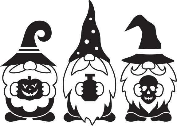 Halloween gnomes with a pumpkin, potion and skull
