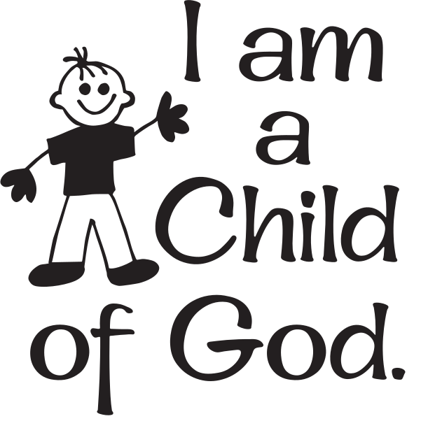Decal of the words “I am a Child of God.” with a boy stick figure