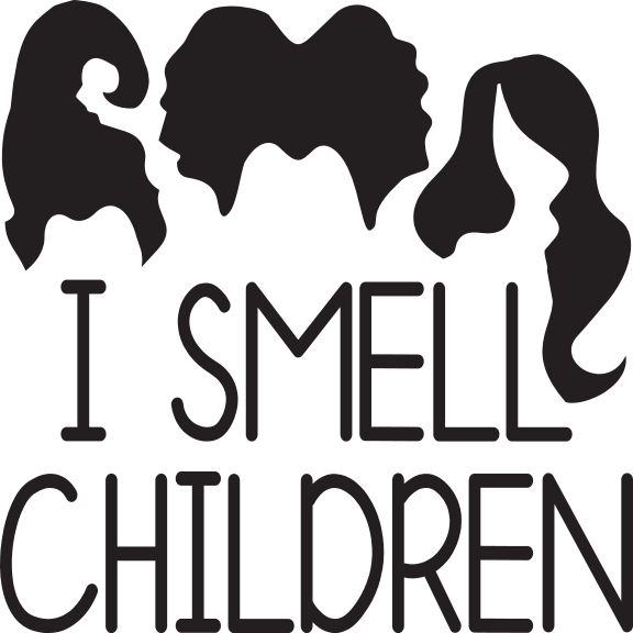 Decal of the Sandreson sisters haircuts with the words “I smell children”