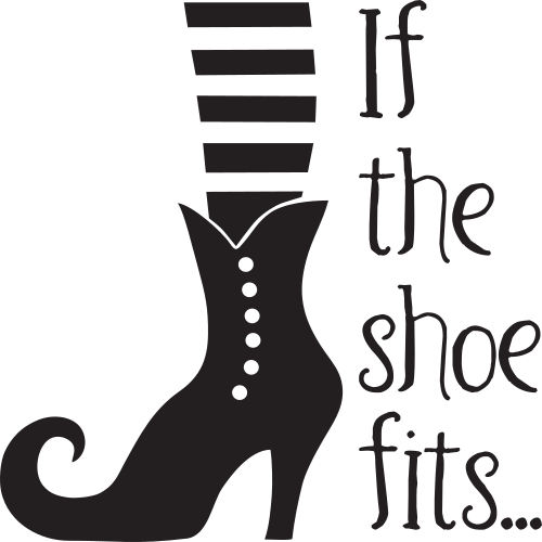 Decal of the words “If the shoe fits…” with a witch’s boot