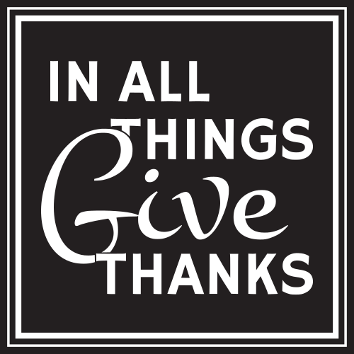 Decal of the words “IN ALL THINGS Give THANKS”