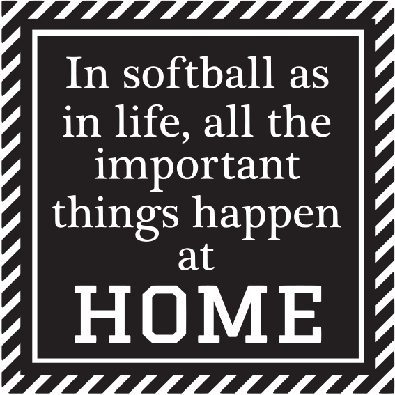 Decal of the words “In softball as in life, all the important things happen at HOME”