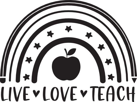 A vinyl decal for teachers with the words “Live Love Teach” under an apple and half circle design