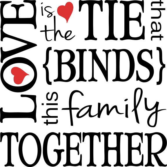 Decal of hearts with the words “LOVE is the TIE that BINDS this family TOGETHER”