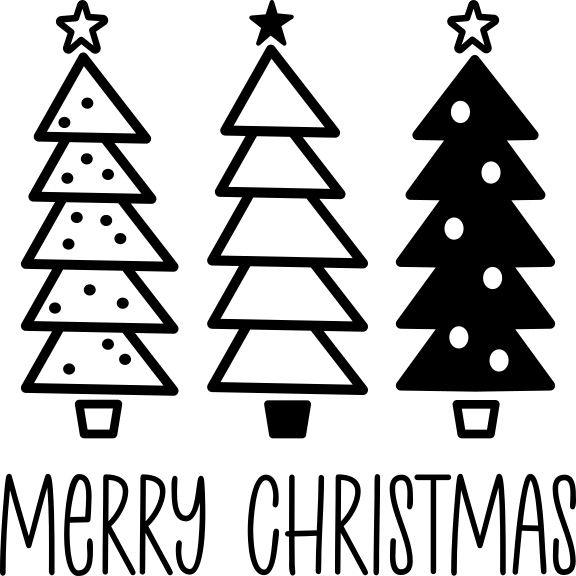 Decal of christmas trees with stars at the top and the words “Merry Christmas” at the bottom