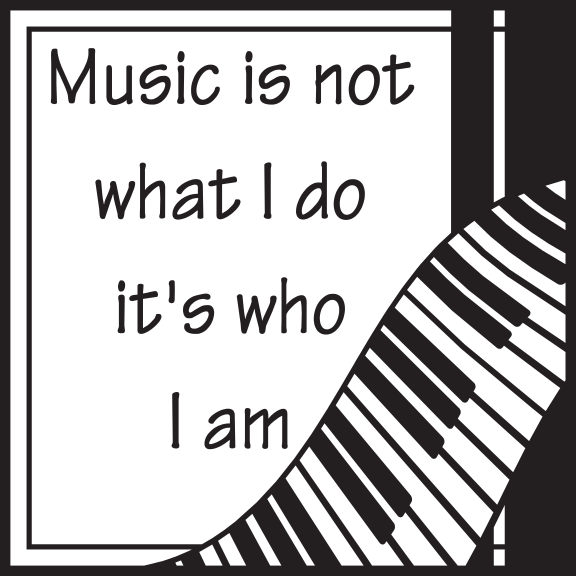 Decal of piano keys with the words “Music is not what I do it’s who I am”
