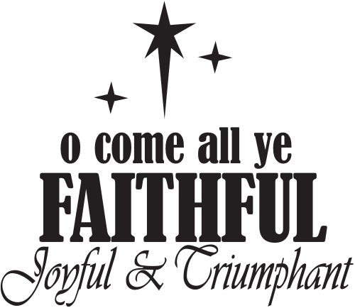 Decal of the words “o come all ye FAITHFUL Joyful & Triumphant” with stars