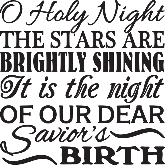 Decal of the words “O holy night the stars are brightly shining it is the night of our dear savior’s birth”