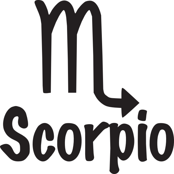 Decal of the Scorpio zodiac sign with the word “Scorpio”