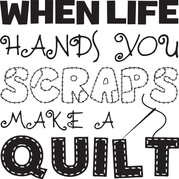 Decal of the words “When life hands you scraps make a quilt” with a sewing needle